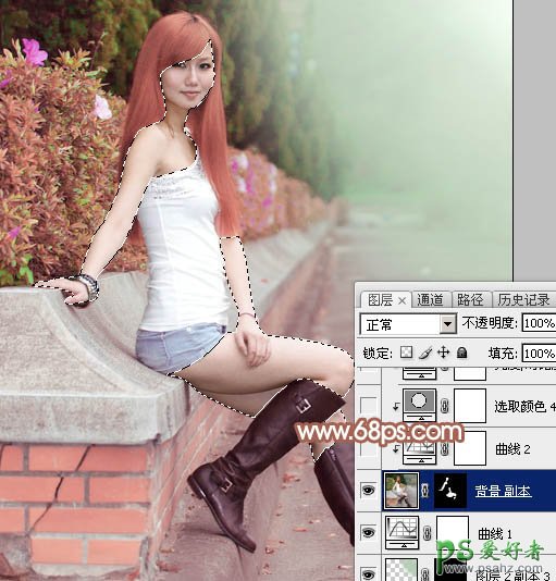 11、把背景图层复制一层,按Ctrl + Shift + ] 置顶,按住Alt键添加图层蒙版,用白色画笔把人物脸部及肤色部分擦出来,如下图。