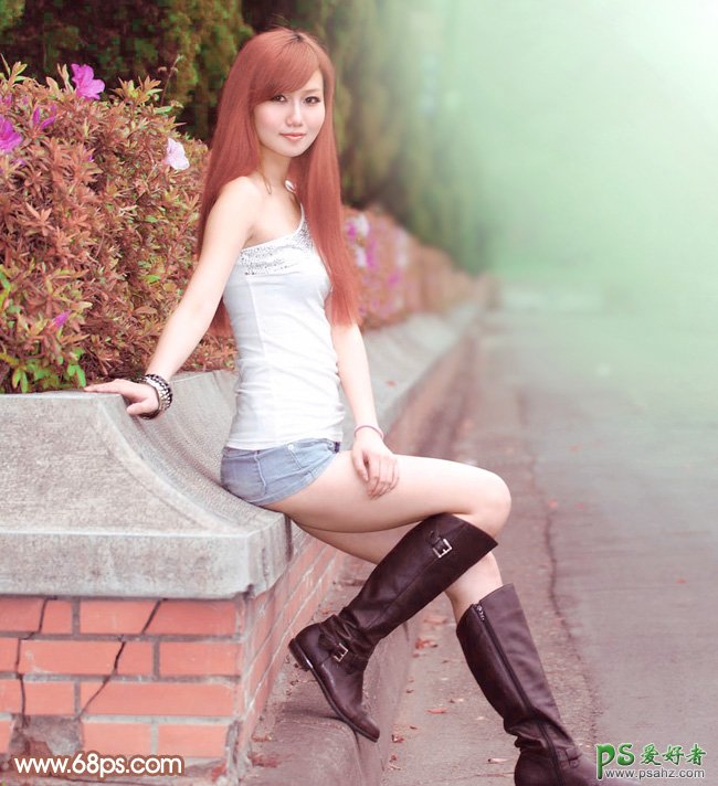PS美女图片调色教程,photoshop给街上自拍的可爱妹妹写真照快速调出甜美的粉红色,调色的时候需要把绿色部分稍保留一部分并调亮,其它部分的颜色都转为红褐色,然后把红色稍微调淡一点,高光部分增加一点淡青色即可。 原图