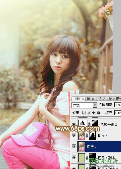 17、新建一个图层,按Ctrl + Alt + Shift + E 盖印图层,适当把图片柔化处理,再用模糊工具把背景局部模式处理,效果如下图。