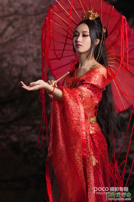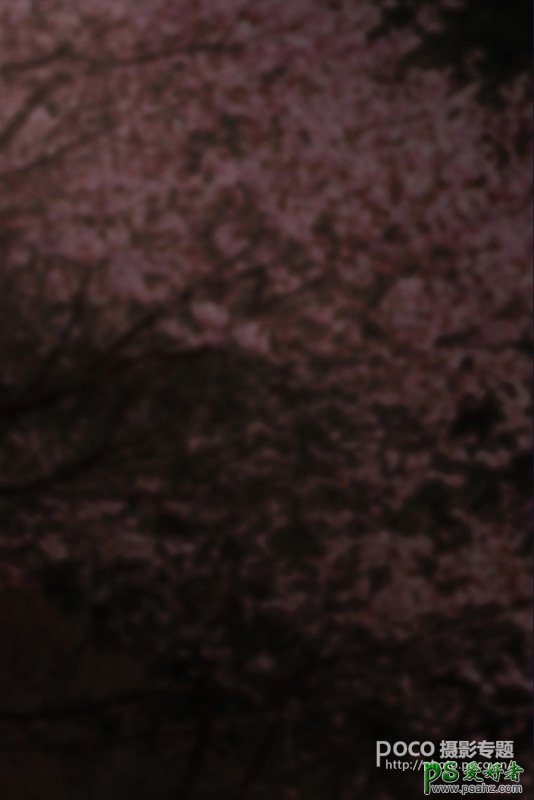 1、根据原片分析,我最终选择了一个桃花盛开的基础背景。因为素材原片是晴天拍摄的,清冷,空寂,神秘,伤感。中长调,所以我下面建立一个黑色的背景,然后使用基础的桃花素材用图层模式:柔光。来制作一个基础的背景,因为我希望它是暗的。