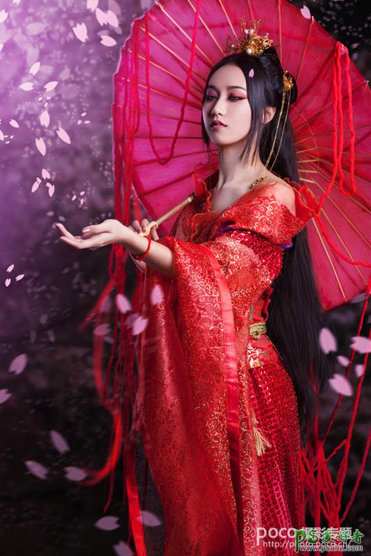 5、我需要给画面加一点蓝紫色,我想要紫色的纯度更高一点,之前我要做中长调,但是用了冷色之后我觉得纯度在高一点也没有关系,更清冷一点。这个效果还不够,我想皮肤再冷一点,饱和低一点,然后跟环境光作对比,画面更透。 小S曲线加对比,黄通道整体提一点蓝,绿,红通道微微调了一点。