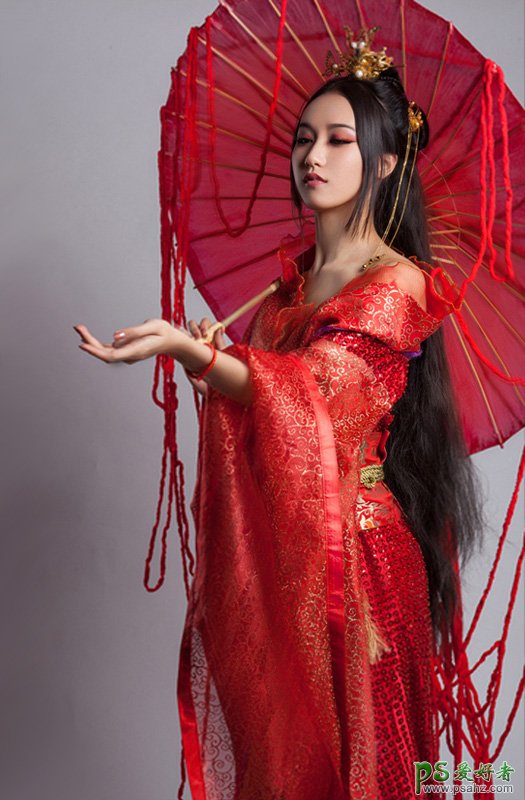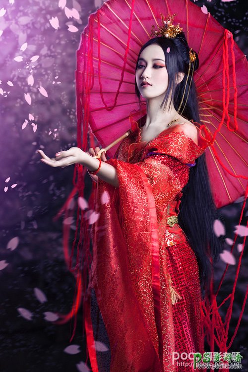 PS古典美女图片后期调色教程:打造唯美紫红色性感古典美女艺术照