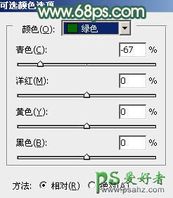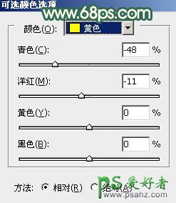 1、打开素材图片,创建可选颜色调整图层,对黄,绿色进行调整,参数设置如图1,2,效果如图3。这一步先把背景部分的主色转为黄绿色。