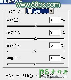 6、创建可选颜色调整图层,对红、黄、白、中性色进行调整,参数设置如图19 - 22,效果如图23。这一步同样给图片增加橙红色。