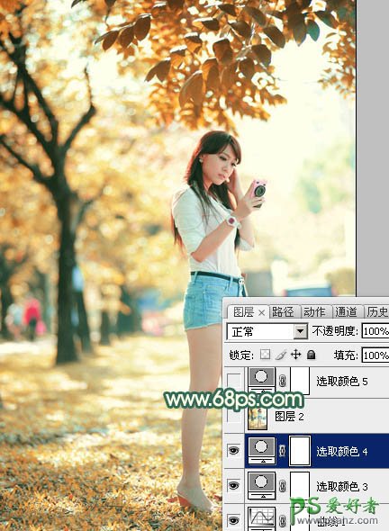 ps调色教程:给洁白玉腿少女写真照调出秋天感觉阳光暖色调