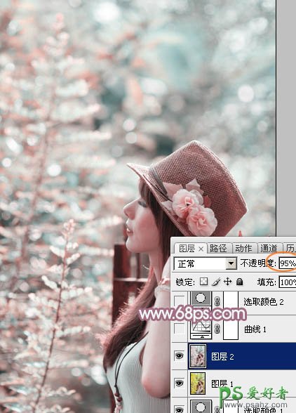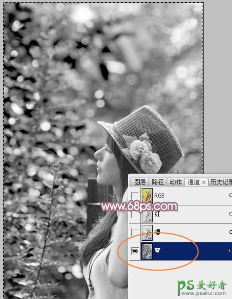 5、选择下图所示的通道,按Ctrl + V 粘贴。然后点击RGB通道返回图层面板,然后把当前图层不透明度改为:95%,效果如图8。