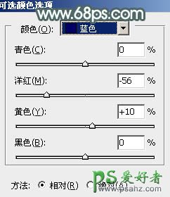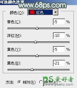 6、创建可选颜色调整图层,对红、黄、蓝、洋红、白、中性色进行调整,参数设置如图14 - 19,效果如图20。这一步主要把图片中的暖色调淡。