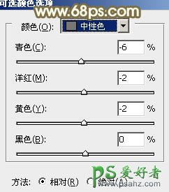 1、打开素材图片,创建可选颜色调整图层,对红、黄、绿、中性、黑色进行调整,参数设置如图1 - 5,效果如图6。这一步给图片背景增加黄褐色。