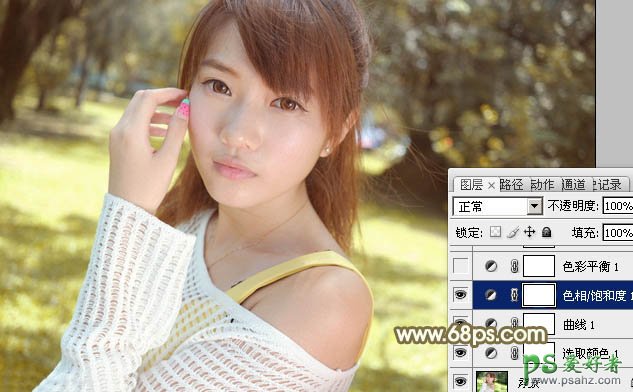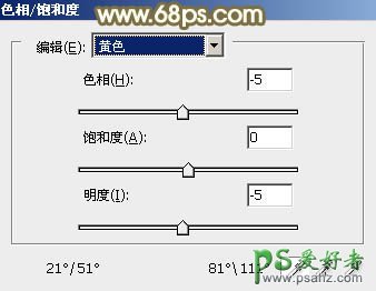 3、创建色相/饱和度调整图层,对黄色进行调整,参数及效果如下图。这一步把图片中的黄色转为黄褐色。