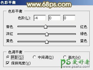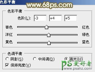 4、创建色彩平衡调整图层,对阴影、中间调、高光进行调整,参数及效果如下图。这一步主要给图片高光部分增加淡黄色。