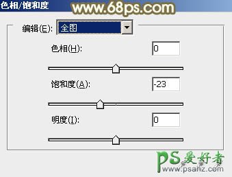 5、创建色相/饱和度调整图层,对全图进行调整,适当降低饱和度,参数及效果如下图。