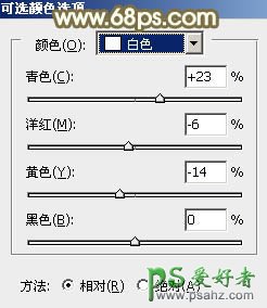 7、创建可选颜色调整图层,对红、黄、白进行调整,参数设置如图22 - 24,效果如图25。这一步给图片增加红褐色。