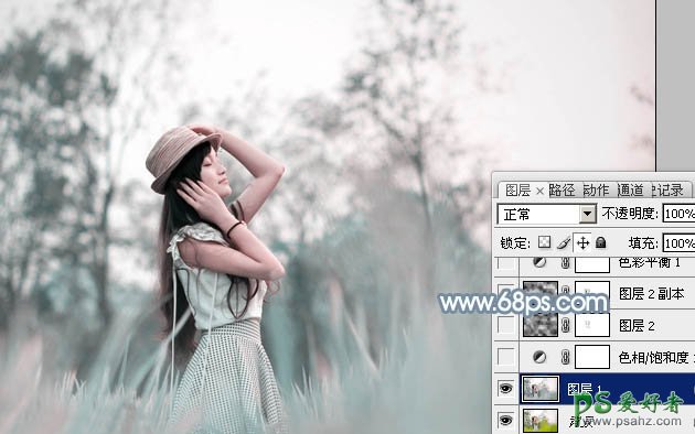 1、打开素材图片,把背景图层复制一层,进入通道面板,用绿色通道覆盖蓝色通道,返回图层面板,效果如下图。