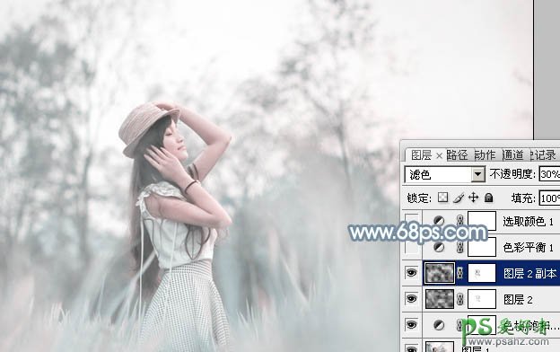 4、新建一个图层,再执行:滤镜 > 渲染 > 云彩,确定后把图层混合模式改为“滤色”,不透明度改为:30%,效果如下图。
