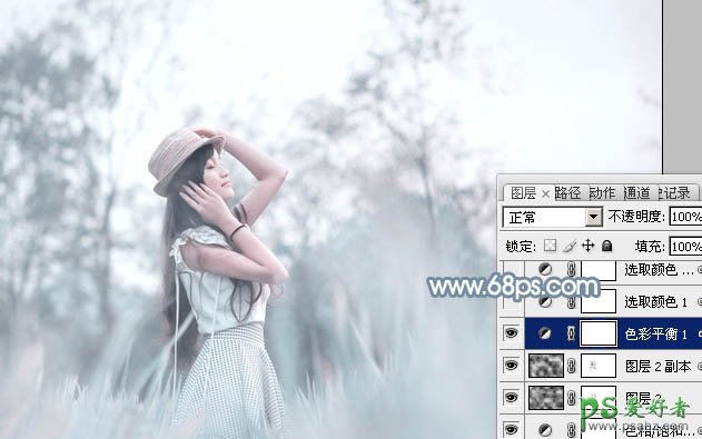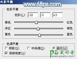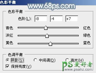 5、创建色彩平衡调整图层,对阴影,高光进行调整,参数及效果如下图。这一步主要给图片高光部分增加淡蓝色。