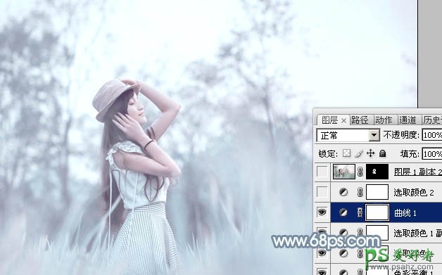 8、创建曲线调整图层,对红、绿、蓝进行调整,参数设置如图17 - 19,效果如图20。这一步给图片增加淡蓝色。