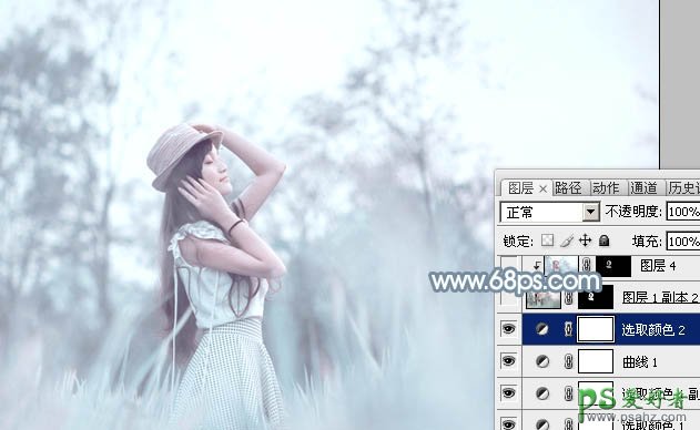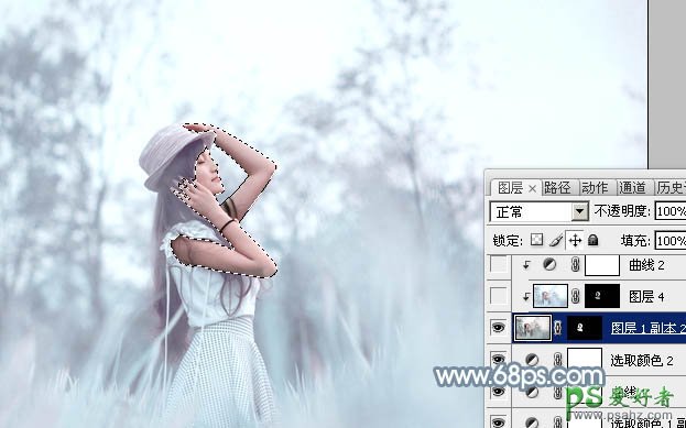 10、把背景副本图层复制一层,按Ctrl + Shift + ] 置顶,按住Alt键添加图层蒙版,用白色画笔把人物脸部及肤色部分擦出来,效果如下图。