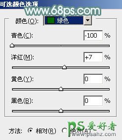 1、打开素材图片,创建可选颜色调整图层,对绿色进行调整,参数及效果如下图。这一步先把图片中的绿色转为黄褐色。