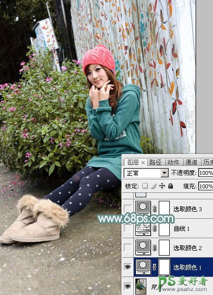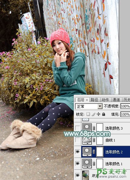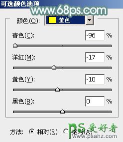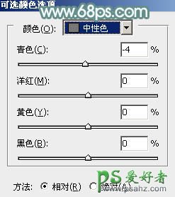 2、创建可选颜色调整图层,对黄、绿、中性色进行调整,参数设置如图3 - 5,效果如图6。这一步把背景主色转为黄褐色。