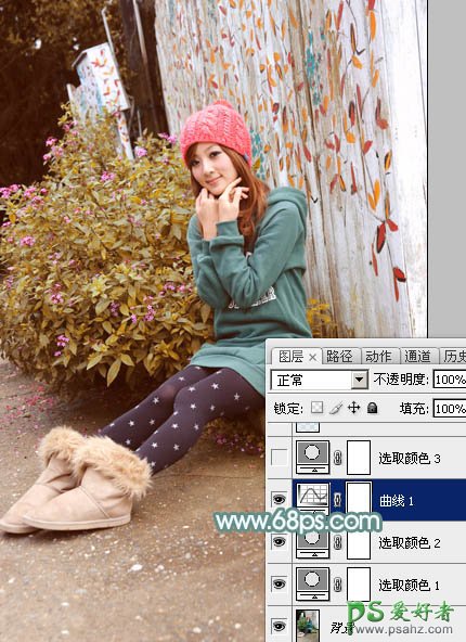 3、创建曲线调整图层,对红,绿通道进行调整,参数及效果如下图。这一步主要给图片暗部增加红色。