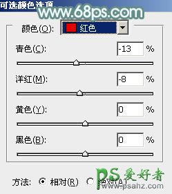4、创建可选颜色调整图层,对红、黄、白、中性色进行调整,参数设置如图9 - 12,效果如图13。这一步也给图片增加红色。