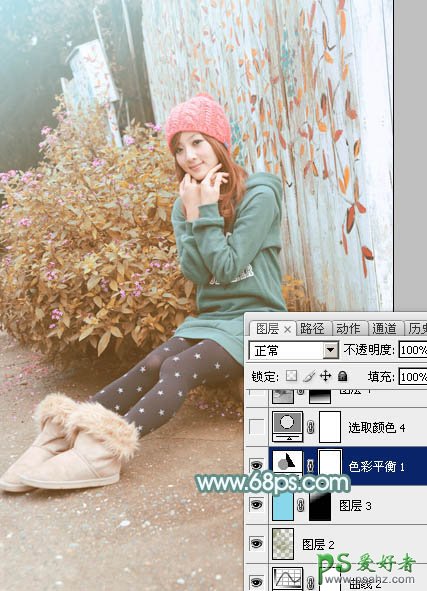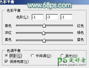 9、创建色彩平衡调整图层,对阴影,中间调进行调整,参数设置如图20,21,效果如图22。这一步主要微调暗部颜色。