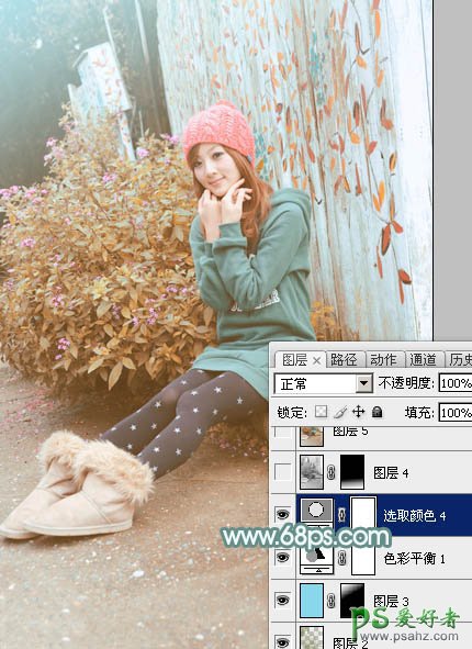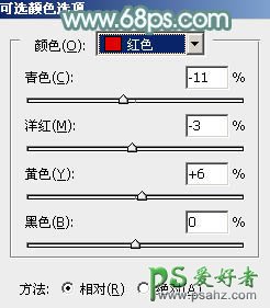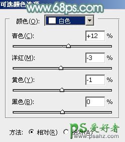 10、创建可选颜色调整图层,对红、黄、白进行调整,参数及效果如下图。这一步给图片增加一点淡红色。