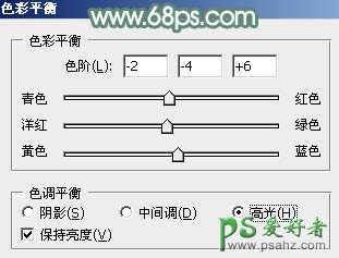 3、创建色彩平衡调整图层,对中间调,高光进行调整,参数及效果如下图。这一步给图片增加淡黄色。
