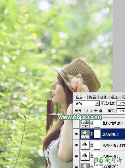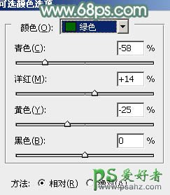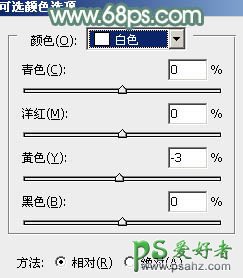 5、创建可选颜色调整图层,对黄、绿、白进行调整,参数设置如图14 - 16,效果如图17。这一步微调图片中的黄绿色。
