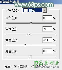 8、创建可选颜色调整图层,对红、黄、绿、白、中性色进行调整,参数设置如图24 - 28,效果如图29。这一步同样把图片中的黄绿色调淡,增加柔美感觉。
