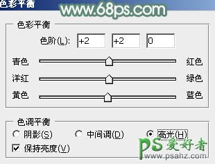 9、创建色彩平衡调整图层,对高光进行调整,参数及效果如下图。这一步给高光部分增加淡黄色。