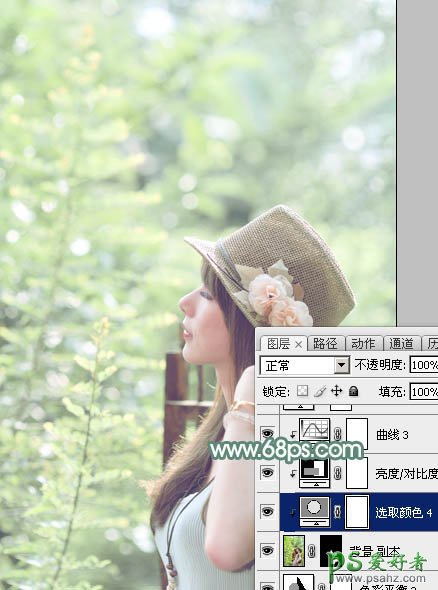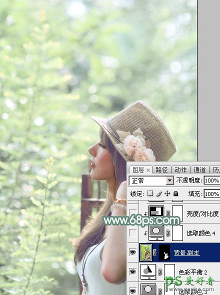 10、把背景图层复制一层,按Ctrl + Shift + ] 置顶,按住Alt键添加图层蒙版,用白色画笔把人物脸部及肤色部分擦出来,然后再微调一下这部分的颜色,如图32,33。