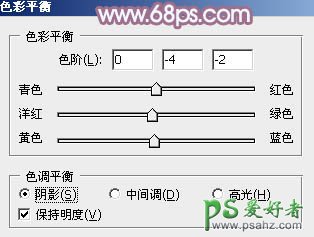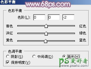 4、创建色彩平衡调整图层,对阴影,高光进行调整,参数及效果如下图。这一步加强暗部及高光颜色。