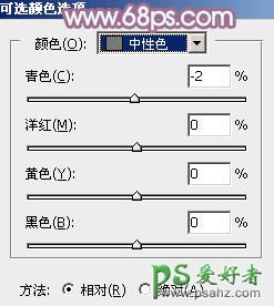 5、创建可选颜色调整图层,对红、黄、中性色进行调整,参数设置如图20 - 22,效果如图23。这一步微调图片中的暖色。