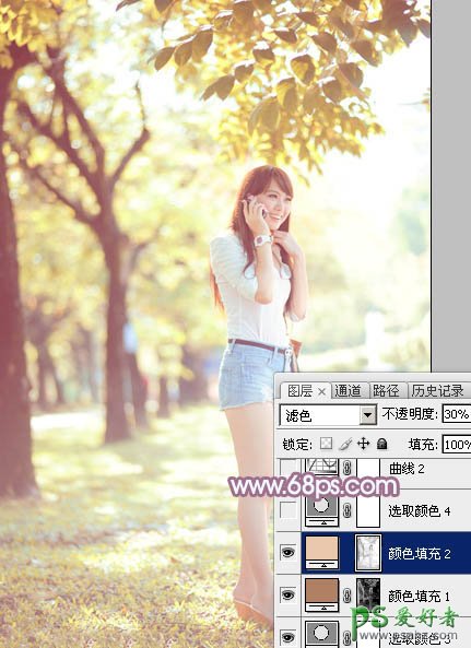 7、按Ctrl + Alt + 2 调出高光选区,然后创建纯色调整图层,颜色设置为:#EAC8AD,确定好把图层混合模式改为“滤色”,不透明度改为:30%,效果如下图。这一步把高光部分的颜色调淡。