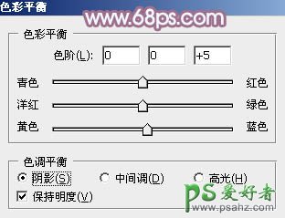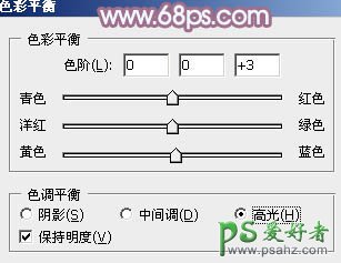 10、创建色彩平衡调整图层,对阴影,高光进行调整,参数设置如图34,35,效果如图36。这一步同样给图片增加淡蓝色。