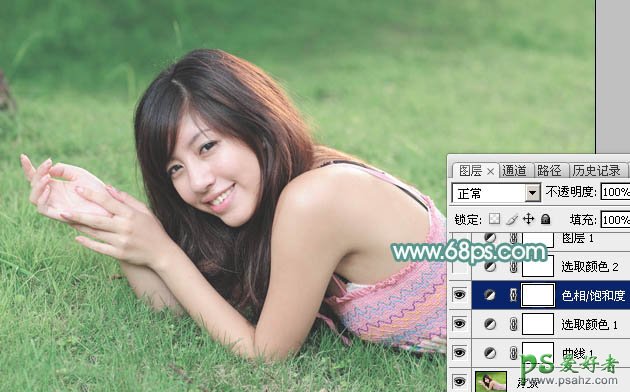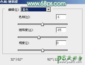 3、创建色相/饱和度调整图层,对黄色进行调整,参数及效果如下图。这一步是的降低图片中黄色亮度。