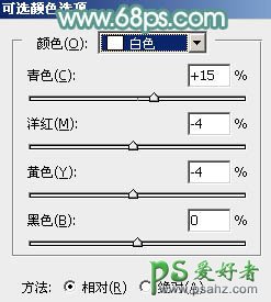 4、创建可选颜色调整图层,对黄、绿、白、黑进行调整,参数设置如图8 - 11,效果如图12。这一步给图片增加青色。