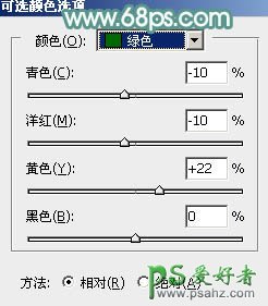 11、创建可选颜色调整图层,对绿、请、白进行调整,参数设置如图24 - 26,效果如图27。这一步给图片增加青绿色。