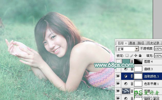 ps调色教程:给日本学生妹性感图片调出个性的青绿色效果