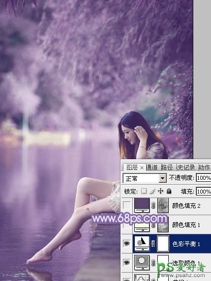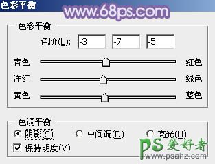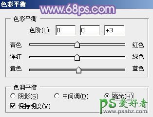 4、创建色彩平衡调整图层,对阴影,高光进行调整,参数设置如图12,13,效果如图14。这一步加强图片暗部及高光部分的颜色。