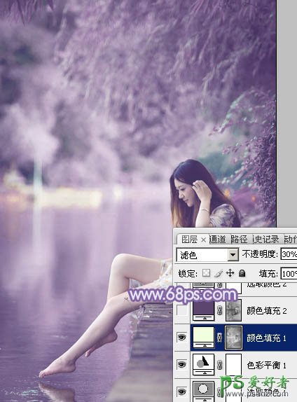 5、按Ctrl + Alt + 2 调出高光选区,然后创建纯色调整图层,颜色设置为淡绿色:#F0FFDD,确定后把混合模式改为“滤色”,不透明度改为:30%,效果如下图。