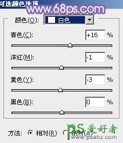 7、创建可选颜色调整图层,对红、洋红、白进行调整,参数设置如图17 - 19,效果如图20。这一步把图片主色调淡。