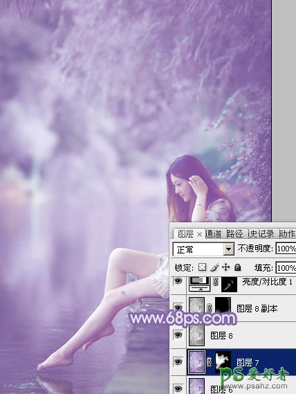 14、新建一个图层,盖印图层,用模糊工具把背景不自然的部分模糊处理。