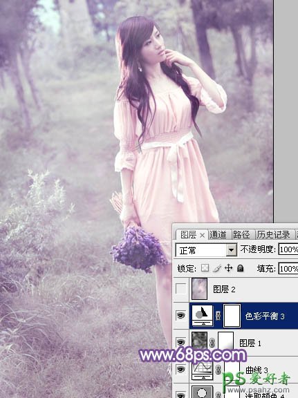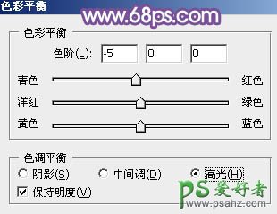 13、创建色彩平衡调整图层,对高光进行调整,参数及效果如下图。