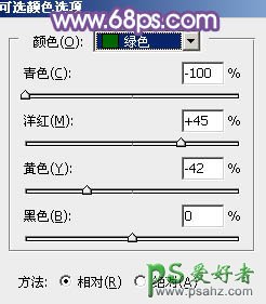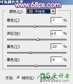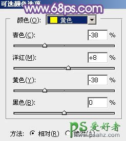 2、创建可选颜色调整图层,对黄、绿、中性色进行调整,参数设置如图4 - 6,效果如图7。这一步把背景主色转为较为中性色黄褐色。