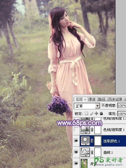 photoshop给绝美少妇户外写真照调出梦境般的神秘色彩