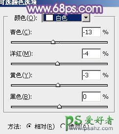 8、创建可选颜色调整图层,对黄,白进行调整,参数及效果如下图。这一步给图片增加暖色。