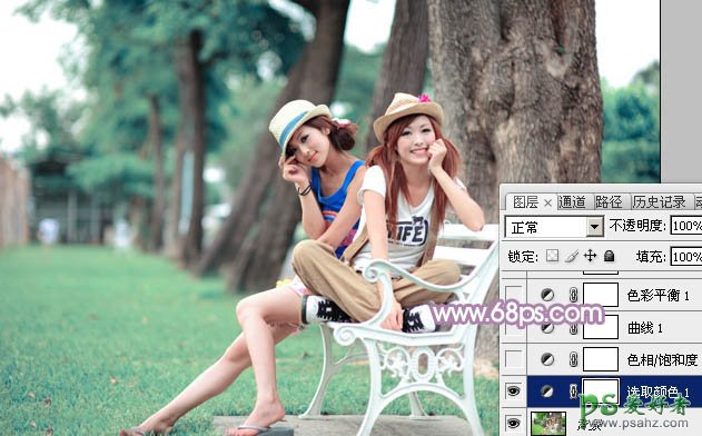 PS调色教程:给公园里的姐妹花写真照调出唯美的意境效果