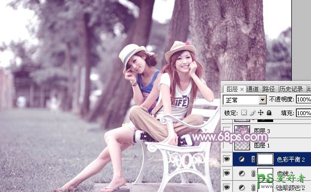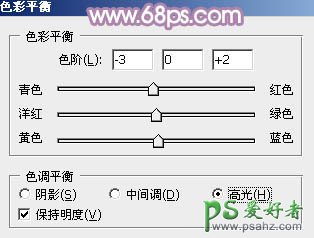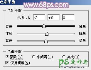 7、创建色彩平衡调整图层,对阴影,高光进行调整,参数及效果如下图。这一步主要给图片暗部增加蓝色。